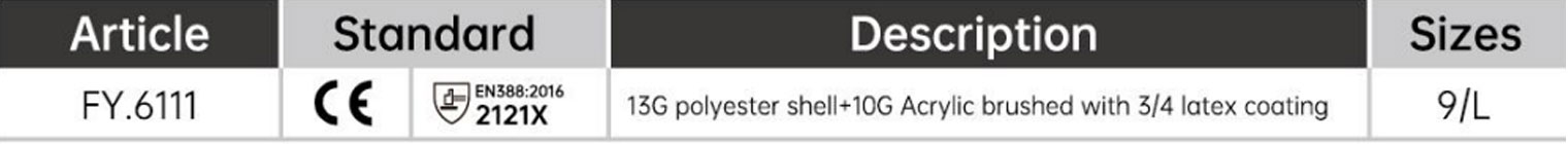 Tolérance de température : le revêtement en latex reste flexible à des températures douces à modérées et ne durcira pas et ne se fissurera pas, assurant ainsi un confort lors d'un travail continu. Jiangsu Fanya Labor Protective Products Co., Ltd. est soumise à un processus de certification international rigoureux pour garantir que ces avantages sont démontrés de manière fiable dans des applications réelles, renforçant ainsi la réputation de l'entreprise sur le marché.